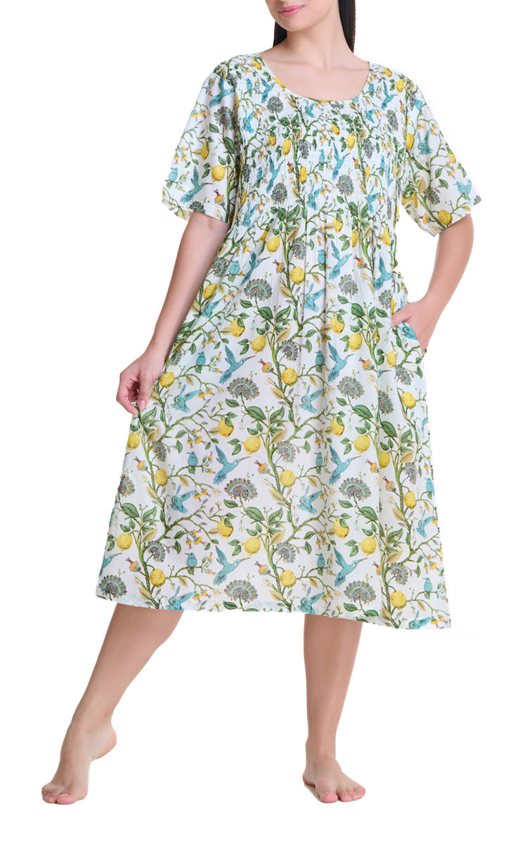 Arabella Angelina 100% Cotton Short Sleeve Nightgown in Lemon Floral MD-83DD