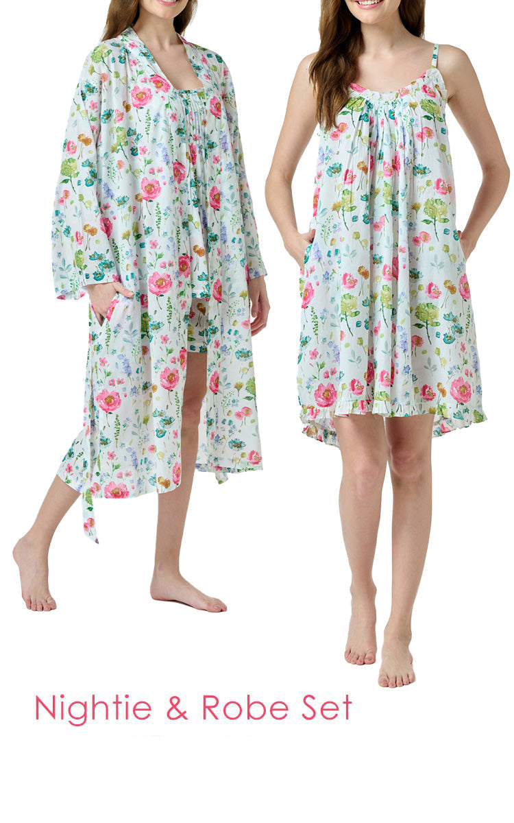 Arabella Carmelina 100% Cotton Nightgown In Spring Camelia MD-410A1