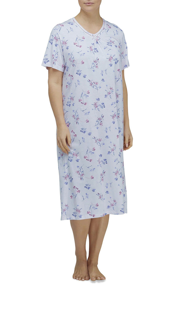 Schrank 100% Cotton Nightgown with Short Sleeve in Blue Floral Bianca SK298